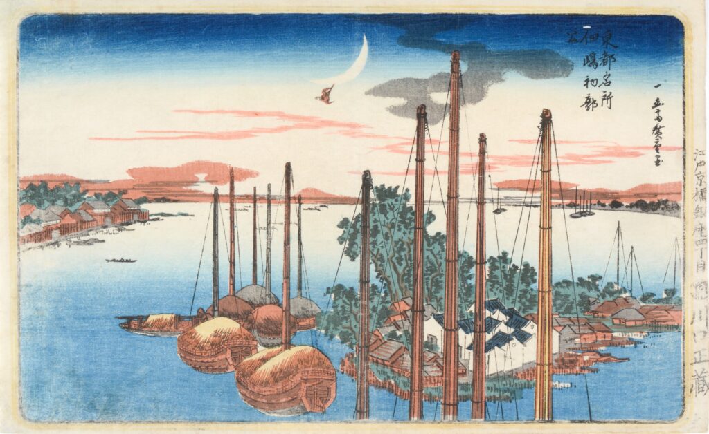 応援プロジェクト「中山道広重美術館を応援する」(募集期間:2024年2月~2025年1月)へお寄せいただいた資金を活用し、2025年度に歌川広重「(月に松上の木菟)」、葛飾北斎「諸国瀧廻り 木曽路ノ奥阿彌陀ヶ瀧」など浮世絵作品を7点新規収蔵いたしました。新規収蔵品7点は、特別展観「開館25周年記念 渓斎英泉・歌川広重 木曽海道六拾九次之内」(2026年8月27日~9月27日)にてお披露目いたします。