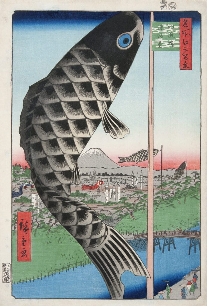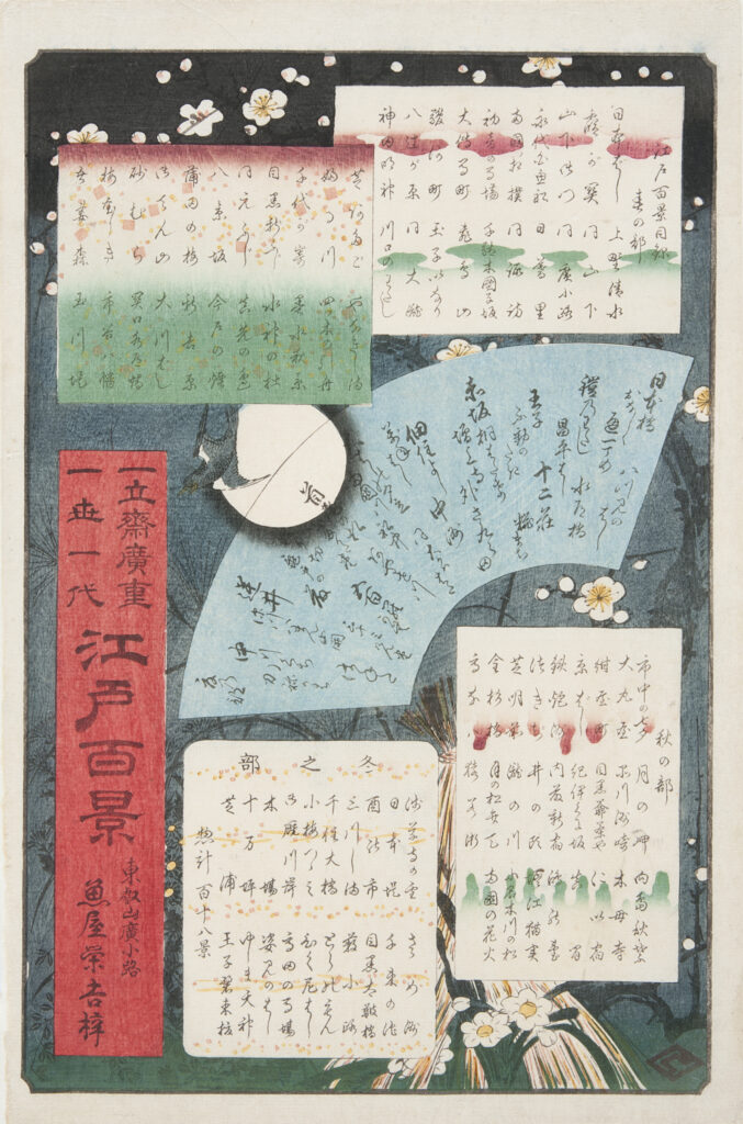 本展では、当館所蔵の「名所江戸百景」を9年ぶりに全点公開し、現代のスマートフォンのような縦長の画面における広重の創意工夫に迫ります。