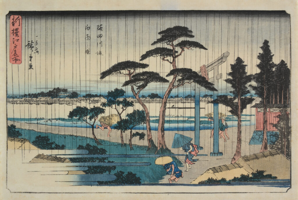 歌川広重「新撰江戸名所 隅田川堤白雨之図」[前期出品]中山道広重美術館蔵