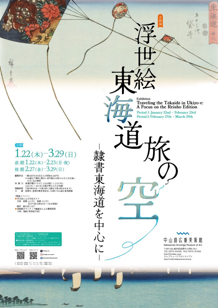 本展では「隷書東海道」全55図のみならず、他の東海道揃物からも出品。皆さまを江戸時代の旅の空へとご案内します。